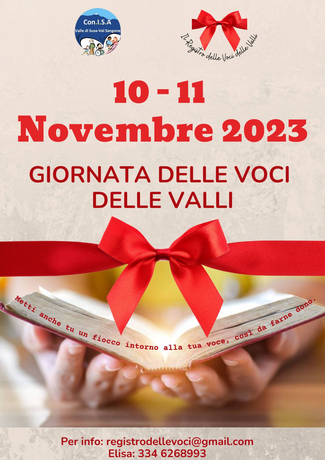 Fin dal giorno della vigilia, il 10 novembre, le voci del registro organizzano sui territori letture ad alta voce. Per celebrare la giornata si propone di mettere un nastro rosso – con fiocco - alla gola; è segno che si infiocchetta la voce, dono prezioso. Nel giorno della festa tutti coloro che avranno il nastro rosso intorno alla gola saranno protagonisti del dono delle voci.