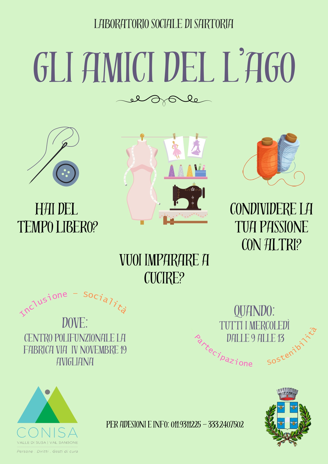 Prende avvio "Gli amici del l'ago", il laboratorio di sartoria sociale tutti i mercoledì dalle 9 alle 13 presso centro polivalente "La Fabrica" Avigliana!