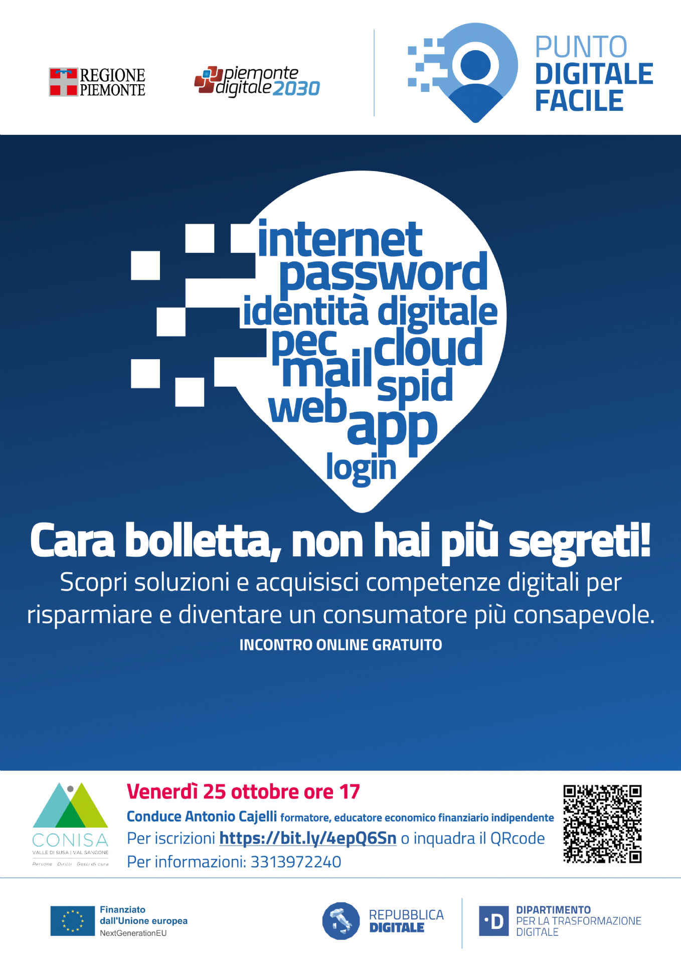 L’incontro è solo uno dei tanti momenti formativi promossi del progetto Facilitazione Digitale coordinato dal Con.I.S.A. Valle di Susa - Val Sangone, con la co-progettazione di Cisv Solidarietà s.c.s e Croce Rossa Italiana Comitato di Susa-OdV. Il progetto è finanziato dal PNRR (Missione 1 – componente 1 – Asse 1 – Misura 1.7.2) tramite il Bando della Regione Piemonte "Rete dei servizi di facilitazione digitale".