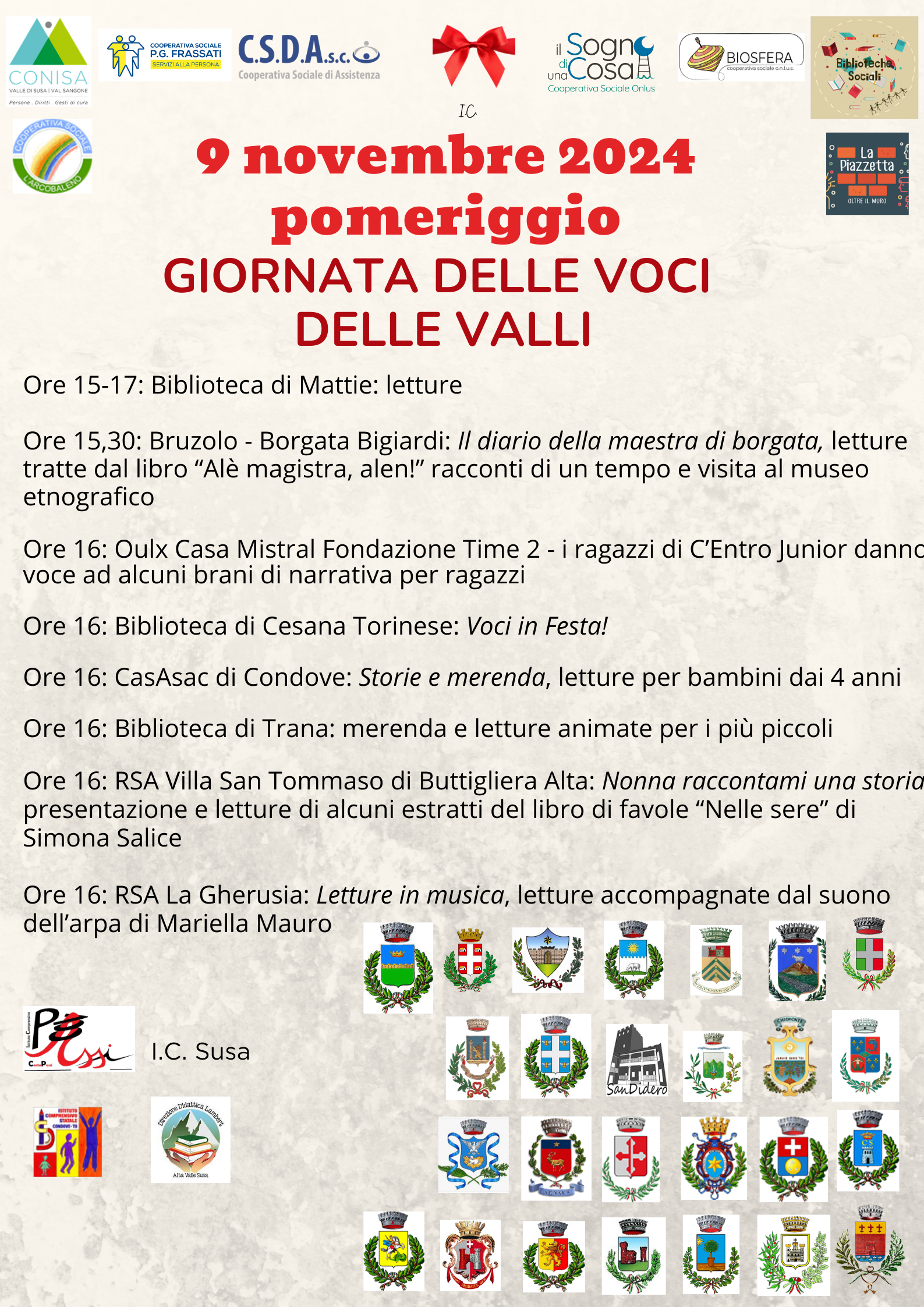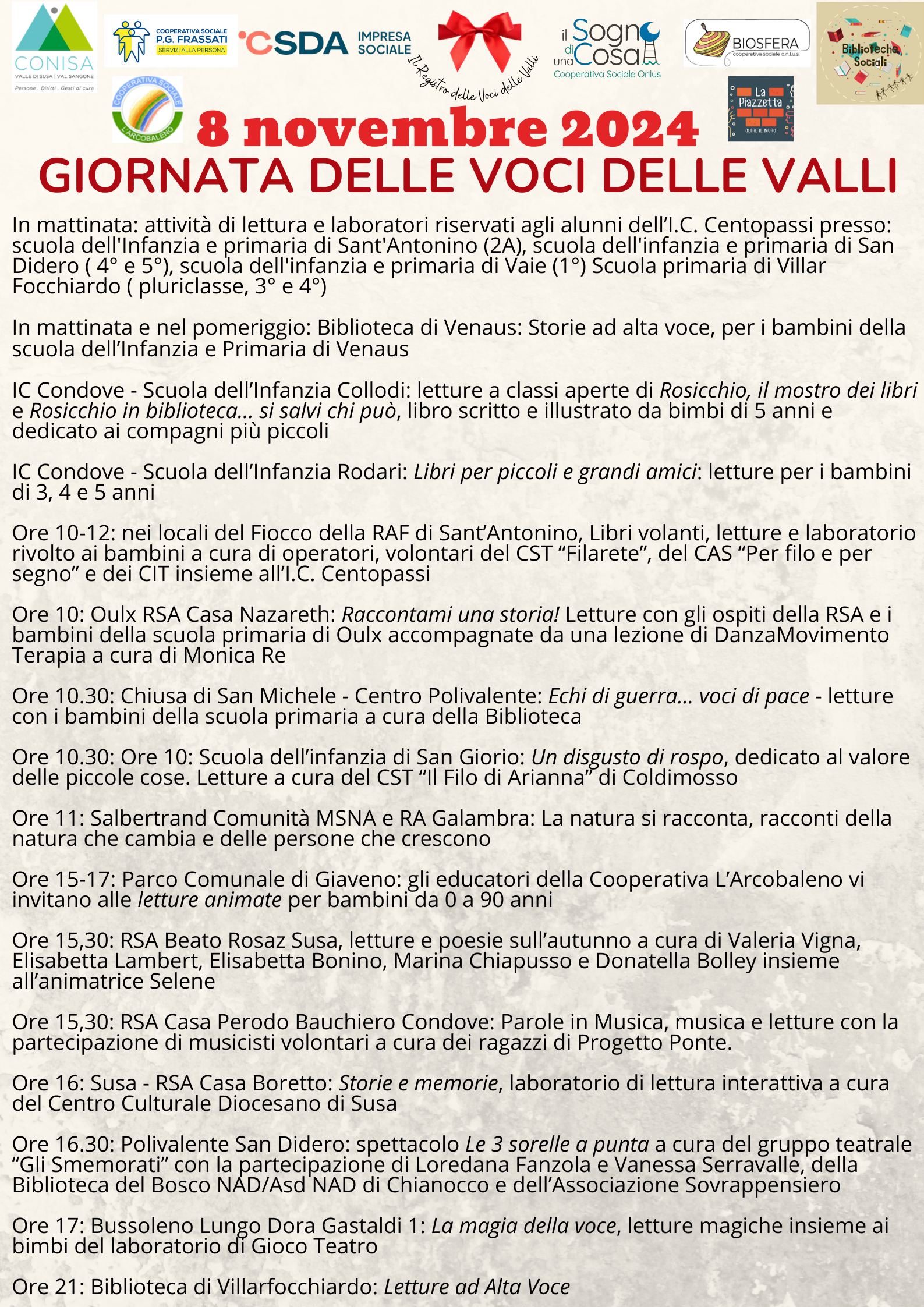 È con gioia che vi comunichiamo le numerosissime iniziative programmate sul nostro territorio per l'8 e il 9 novembre, alcune hanno già preso avvio negli scorsi giorni!
