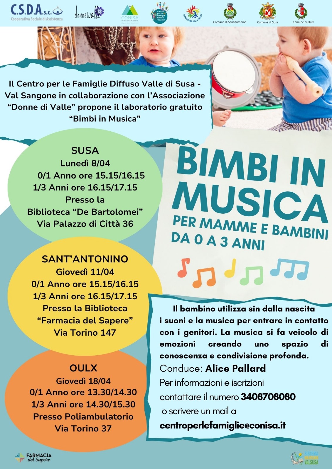 Prende avvio lunedì 8 aprile il primo laboratorio gratuito "Bimbi in musica" per mamme e bambini 0 - 3 anni.