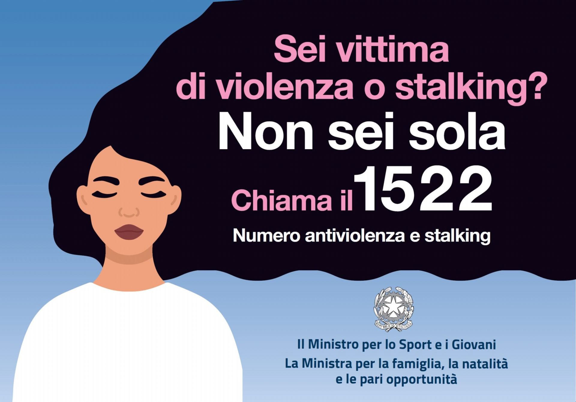 Sei vittima di violenza o stalking? Non sei sola. Chiama il 1522 Numero antiviolenza e stalking.