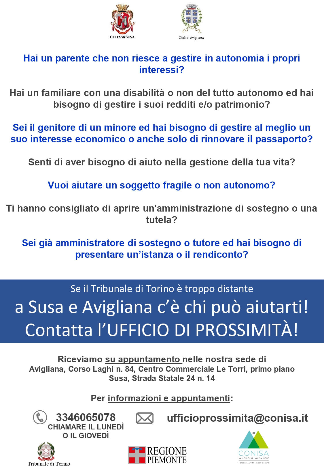 Ufficio di Prossimità - Susa e Avigliana
