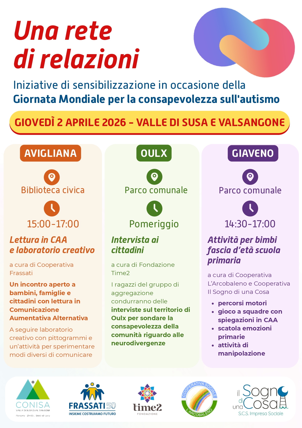 In occasione della 𝑮𝒊𝒐𝒓𝒏𝒂𝒕𝒂 𝑴𝒐𝒏𝒅𝒊𝒂𝒍𝒆 𝒑𝒆𝒓 𝒍𝒂 𝒄𝒐𝒏𝒔𝒂𝒑𝒆𝒗𝒐𝒍𝒆𝒛𝒛𝒂 𝒔𝒖𝒍𝒍'𝒂𝒖𝒕𝒊𝒔𝒎𝒐, ti invitiamo a partecipare a una serie di iniziative dedicate alla sensibilizzazione e all’inclusione 🌈