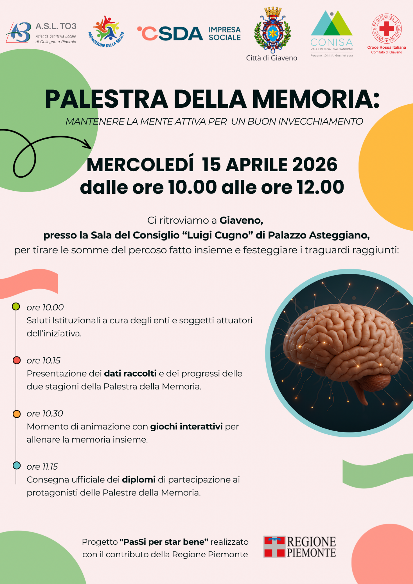 La Città di Giaveno vi invita a un incontro speciale dedicato alla memoria, al benessere mentale e alla condivisione dei risultati raggiunti insieme!