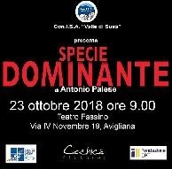 Il Con.I.S.A. Valle di Susa e la Fondazione Casa di Carità Arti e Mestieri Onlus sono lieti di invitarVi alla presentazione di "SPECIE DOMINANTE", il giorno 23 ottobre 2018 alle ore 9,00, Teatro Fassino, Via IV Novembre 19, Avigliana.