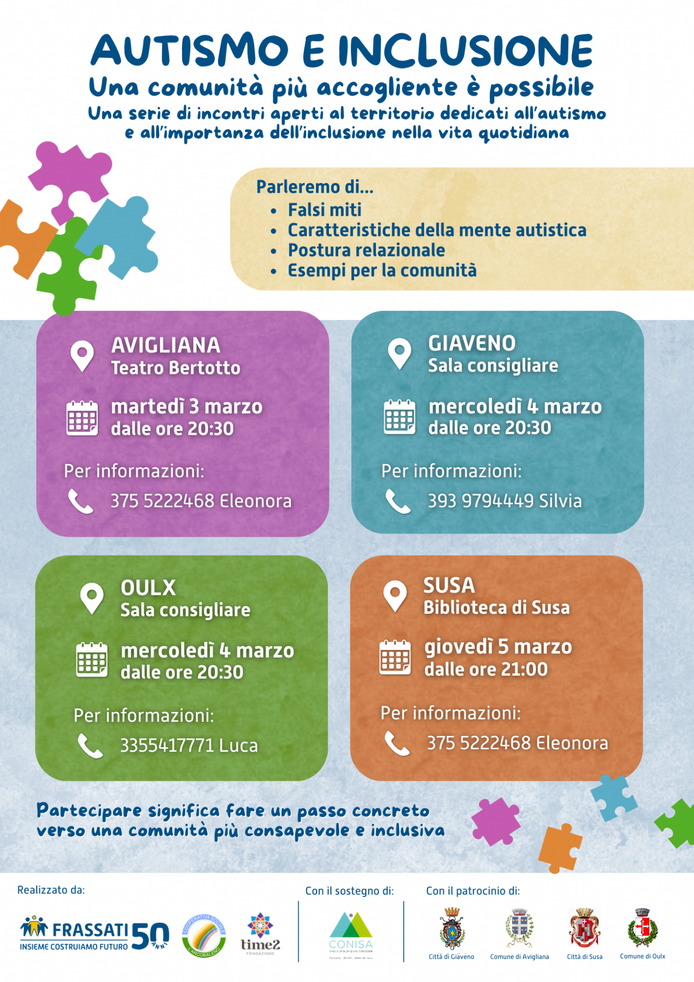 Una serie di incontri aperti al territorio dedicati all’autismo e all’importanza dell’inclusione nella vita quotidiana.